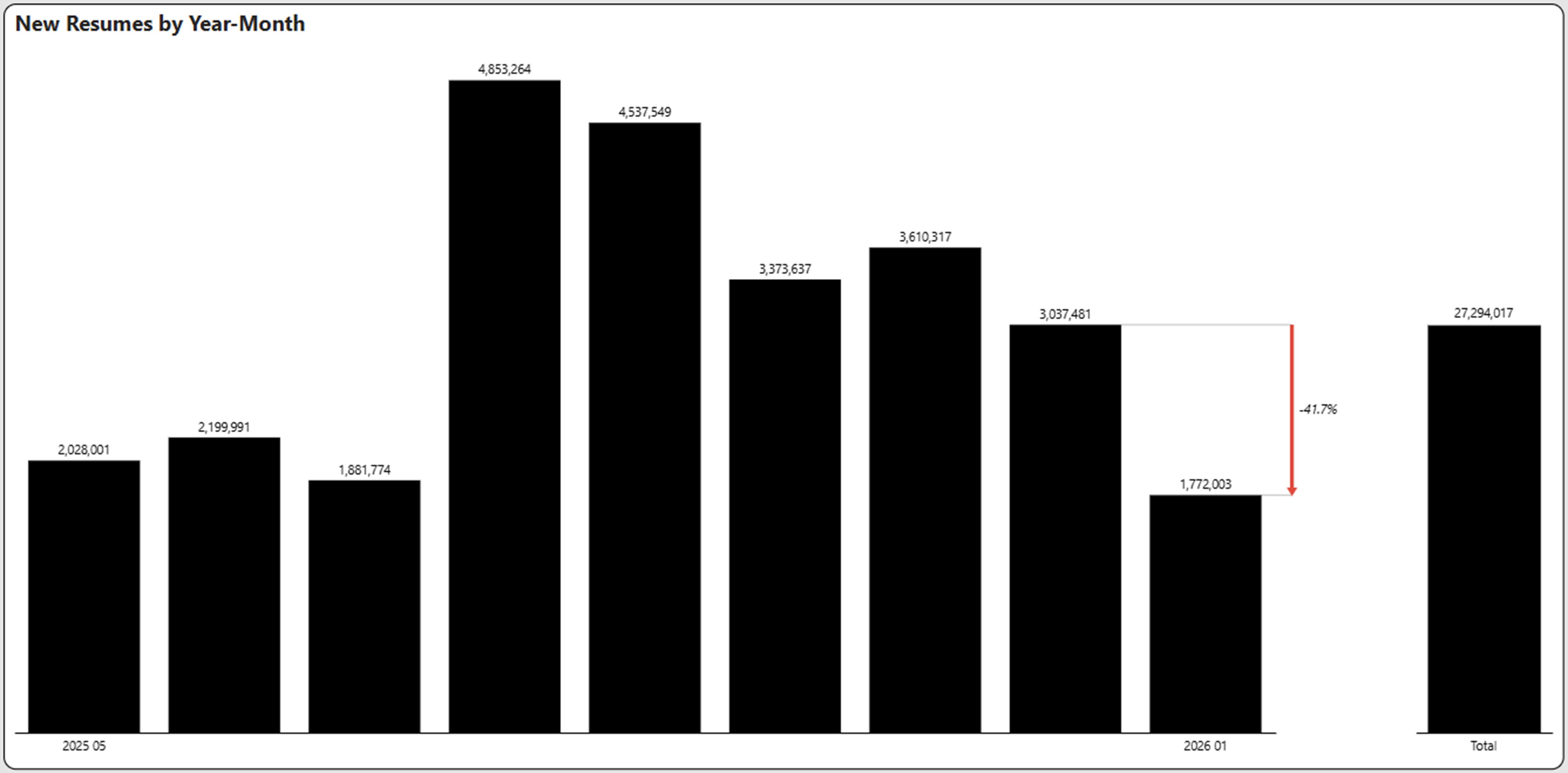 In a month-to-month comparison, new resumes decreased 41.7% in January compared to December.