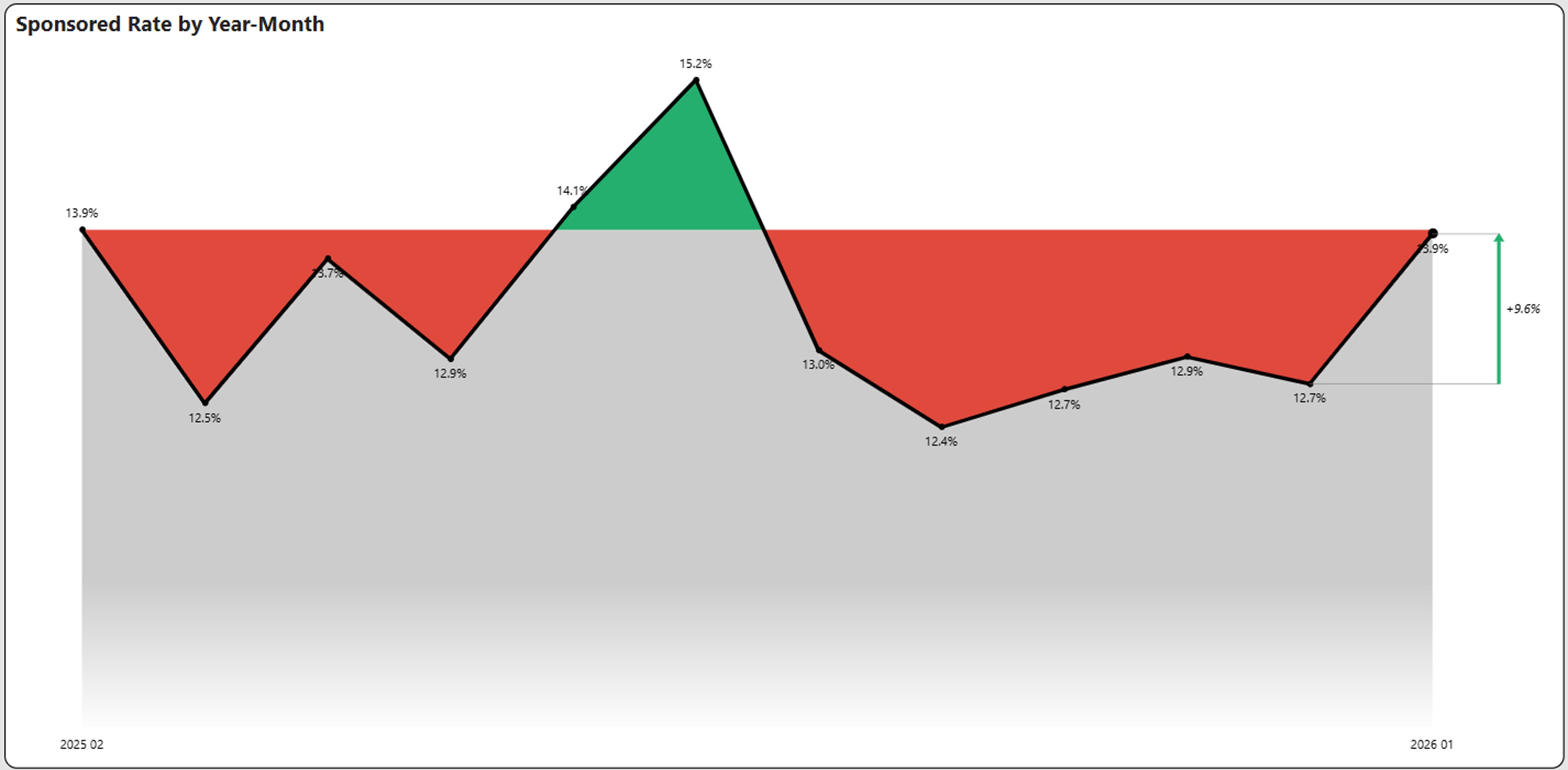 Sponsored rates showed some strength in January, increasing to 13.9%. This is still below the peak of the past twelve months of 15.2%, but at the third highest rate in the past twelve months.