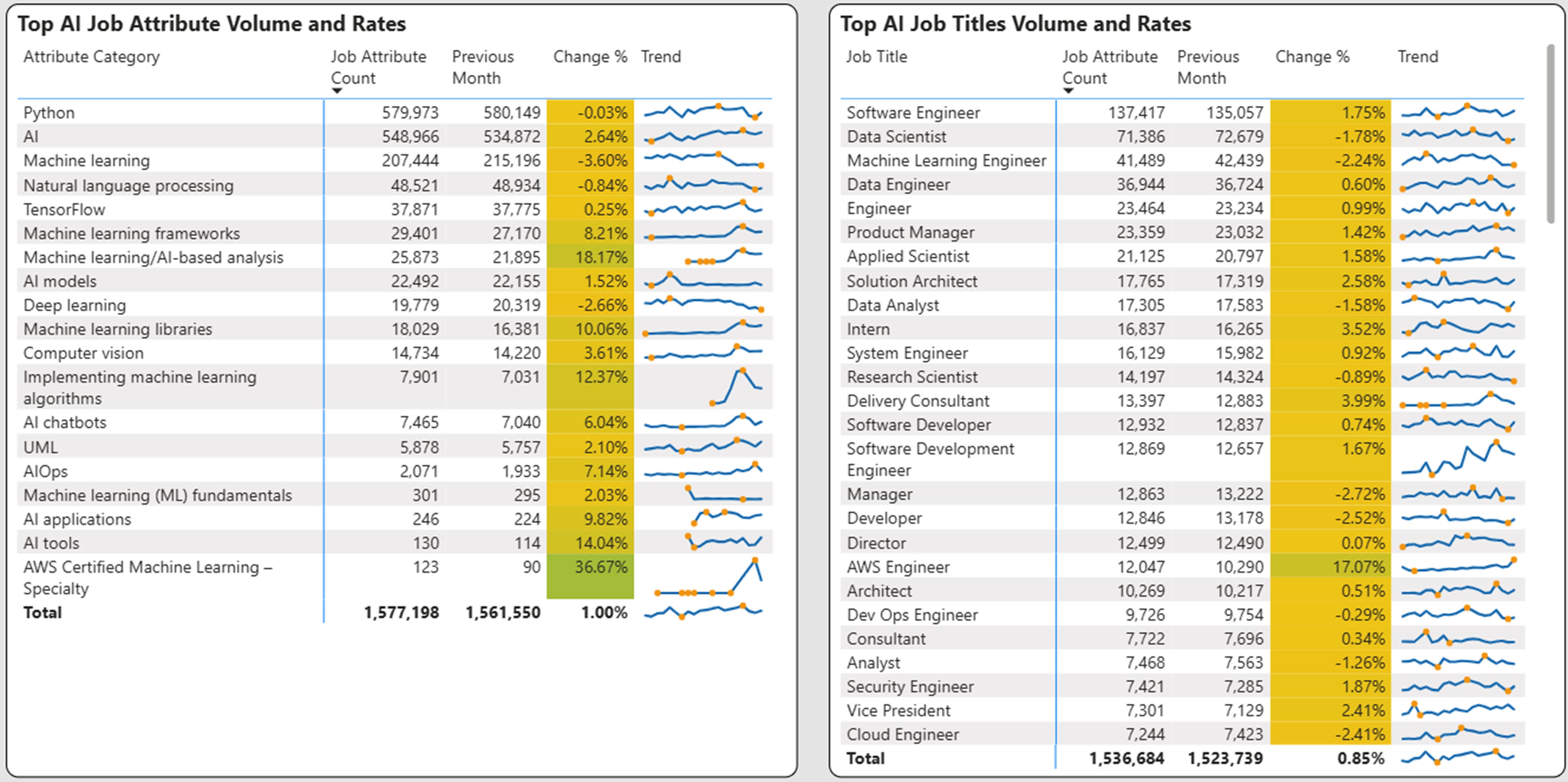 The top AI skills are shown below along with the corresponding job titles.