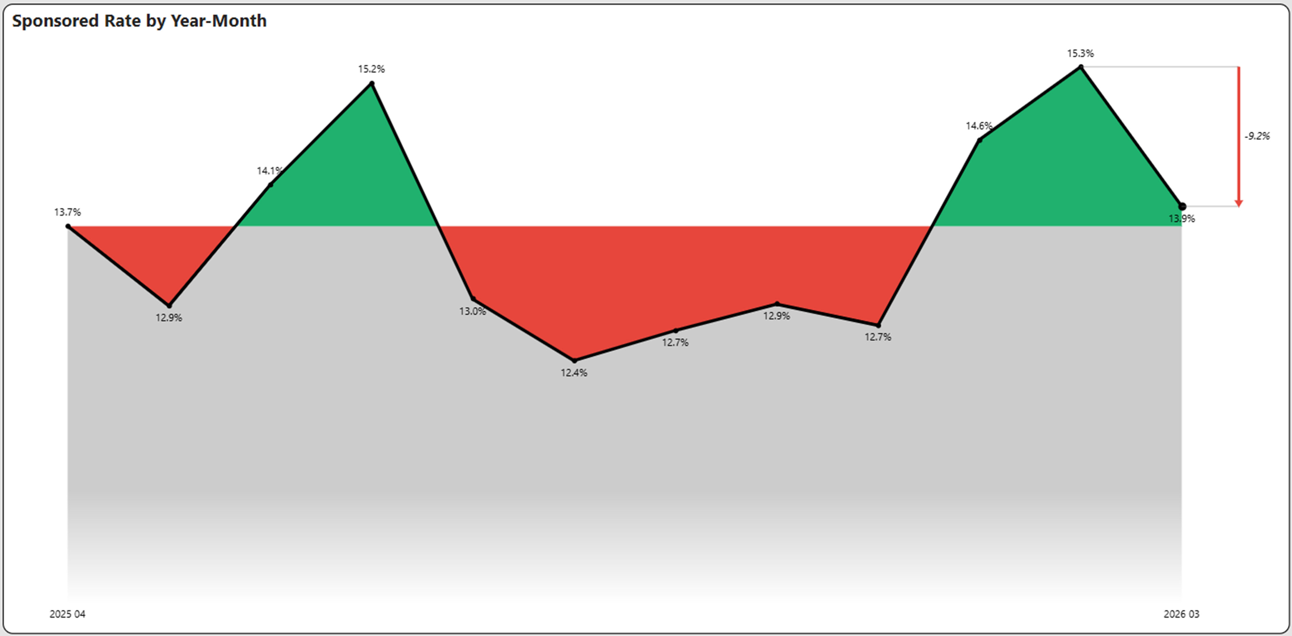 Sponsored rates broke a three-month winning streak in March, declining from 15.3% to 13.9%.