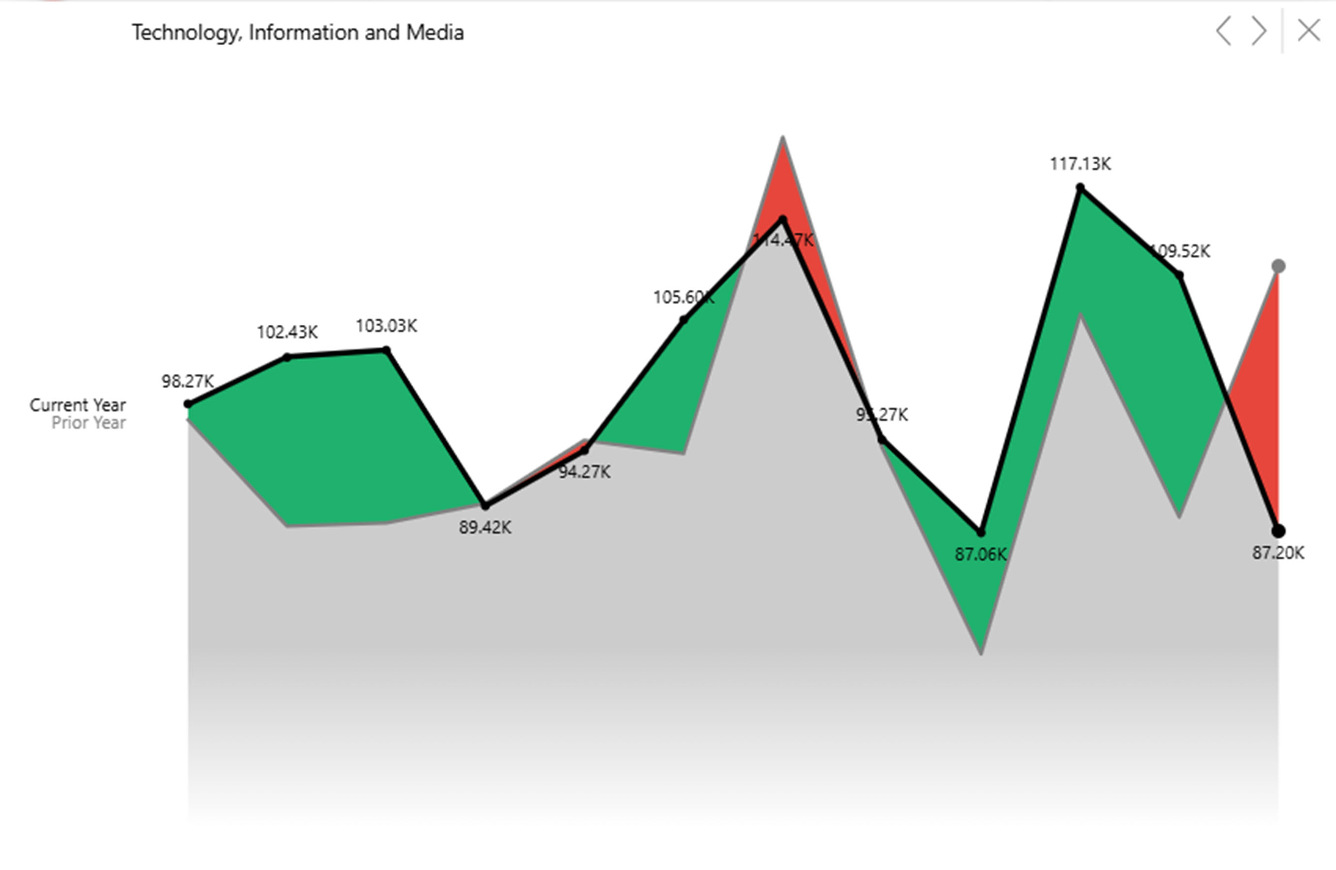 March showed a significant decline in Technology, Information, and Media which for the most part had shown strength in the previous twelve months. The graph below overlays the last twelve months against the previous year.