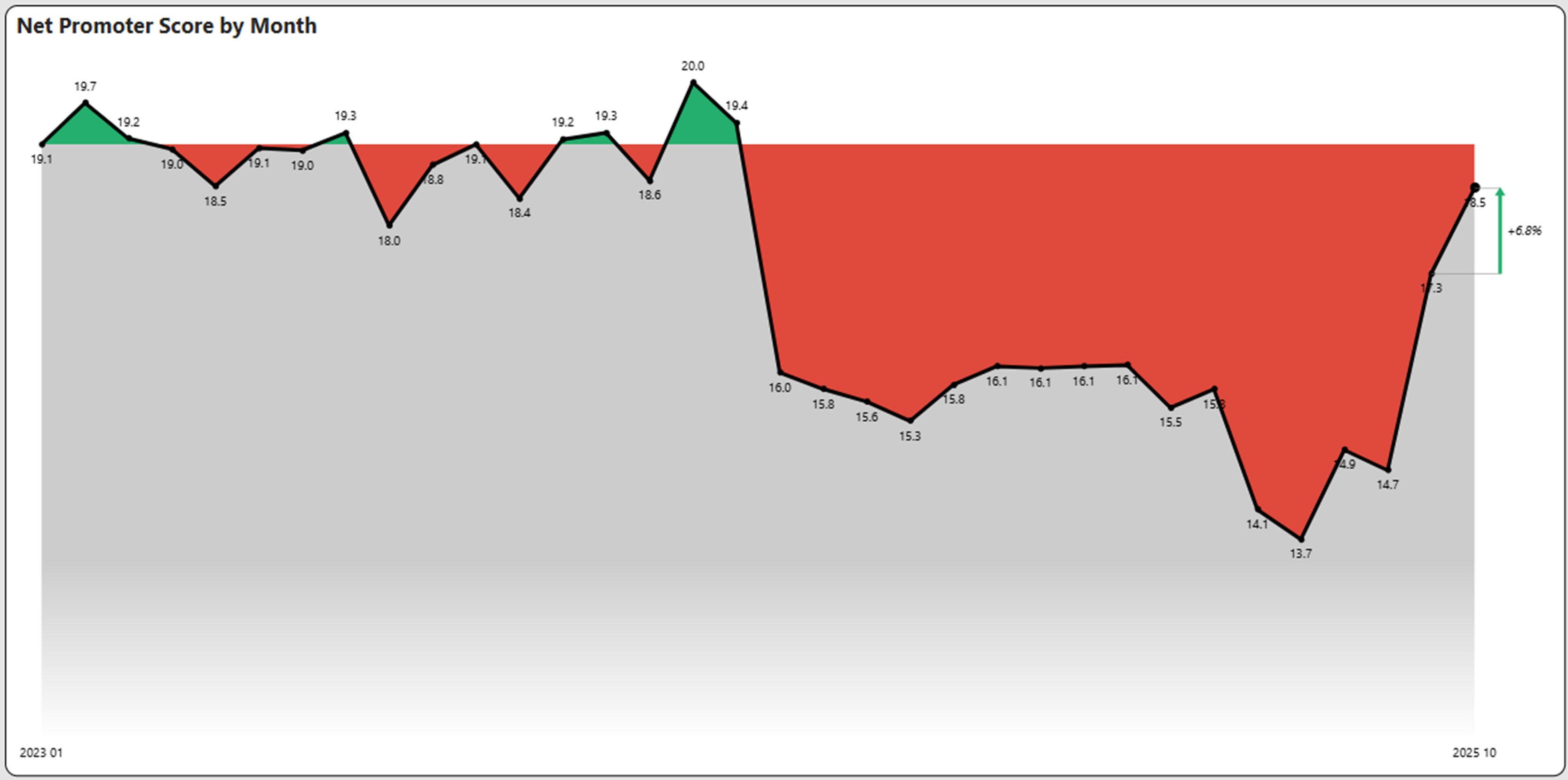 Comparisons of Key Metrics from October to September, August, and July 2025 and to October 2024